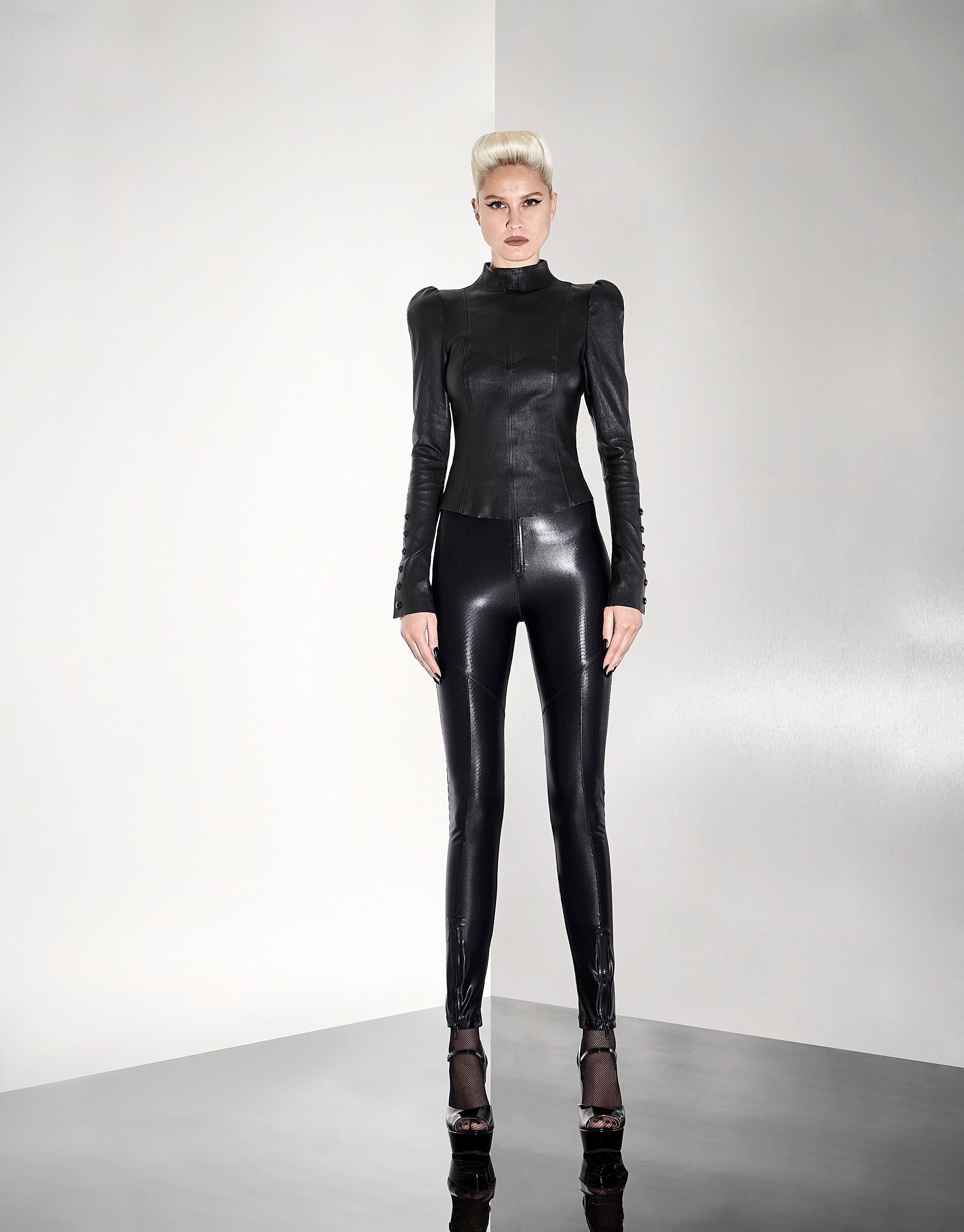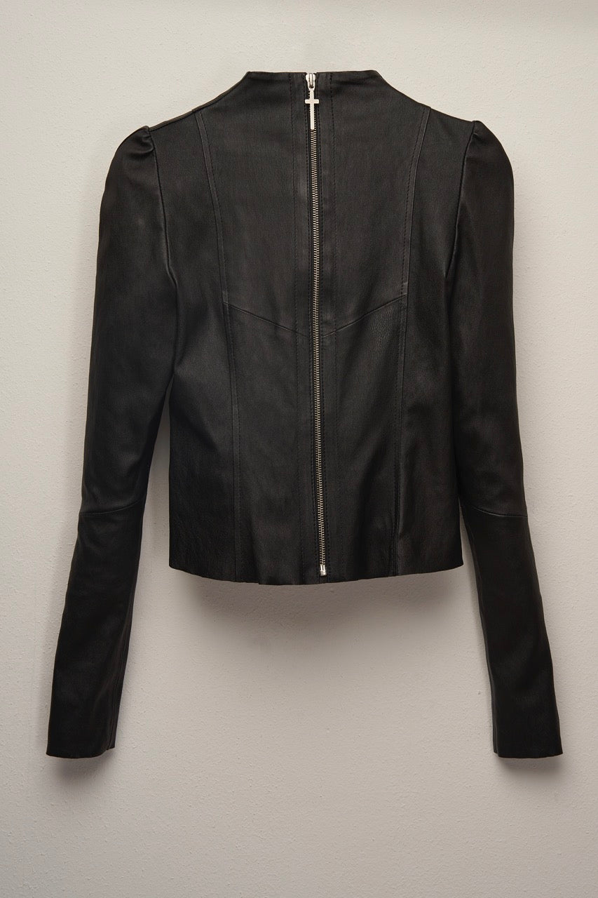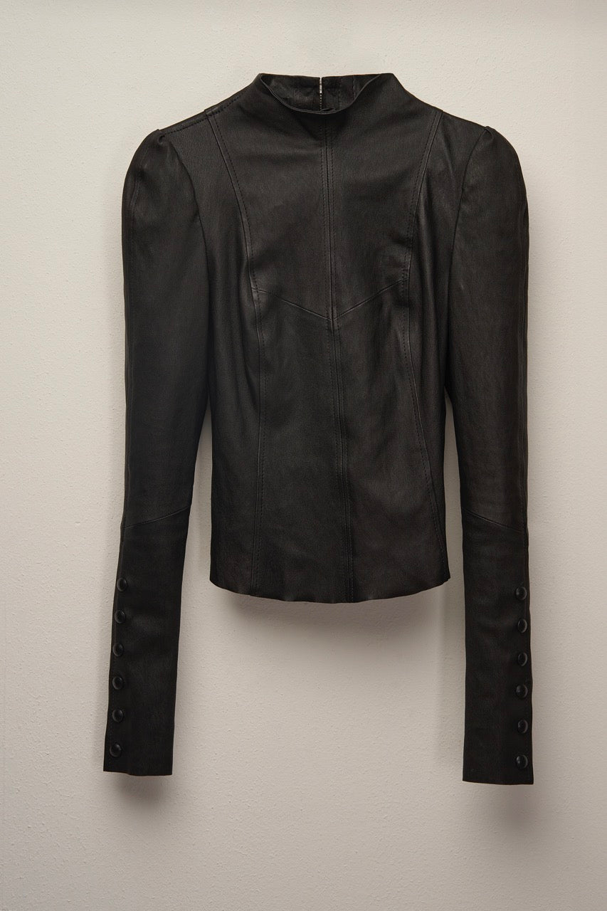 Blusa confeccionada em couro legítimo com elastano na sua construção. Mangas longas com botões forrados de couro no punho. Abertura traseira, com zíper em metal e puxador produzido em  zamak exclusivo AME.M na cor níquel fosco. Seus recortes e o elastano na composição da peça permitem que a blusa se ajuste ao corpo de maneira super confortável. Esta é uma peça super versátil: voce pode usar com o zíper nas costas e variar usando com o zíper na parte da frente tambem! Você terá duas peças completamente diferentes!  A AME.M busca reduzir o impacto social e ambiental através de suas operações, realizadas de maneira ética e sustentável, respeitando o meio ambiente e adotando práticas responsáveis ao longo da cadeia de fornecimento de couro e outros suprimentos.