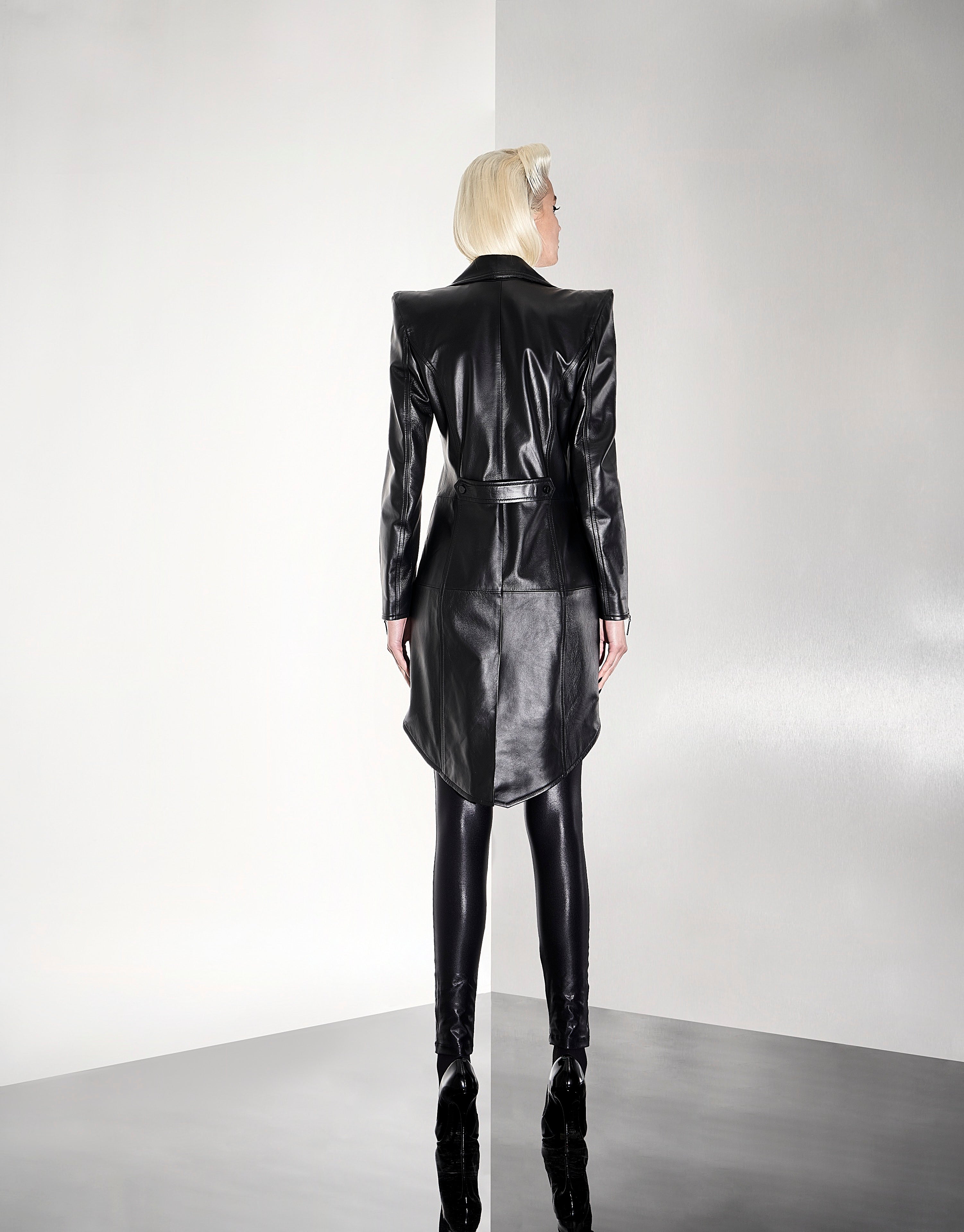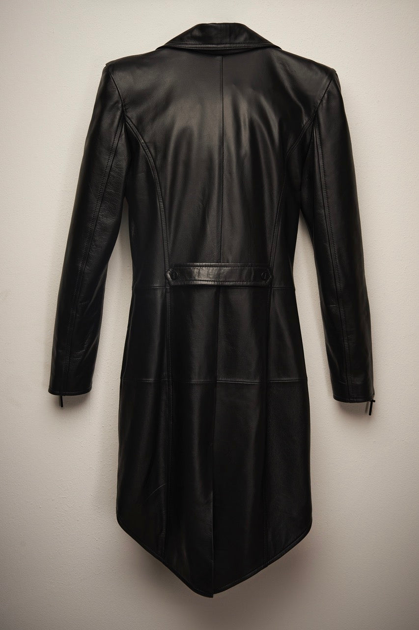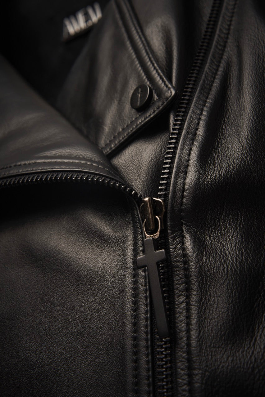Com design original e autoral, esta jaqueta perfecto ganha uma cauda de fraque que torna esta peça icônica e marcante.Confeccionada em couro legitimo e forro nobre 100% acetato, conta com metais fabricados em zamak na cor preto fosco. Botões personalizados exclusivamente para a AME.M assim como os puxadores dos zíperes que compõe  a peça. A AME.M busca reduzir o impacto social e ambiental através de suas operações, realizadas de maneira ética e sustentável, respeitando o meio ambiente e adotando práticas responsáveis ao longo da cadeia de fornecimento de couro e outros suprimentos.